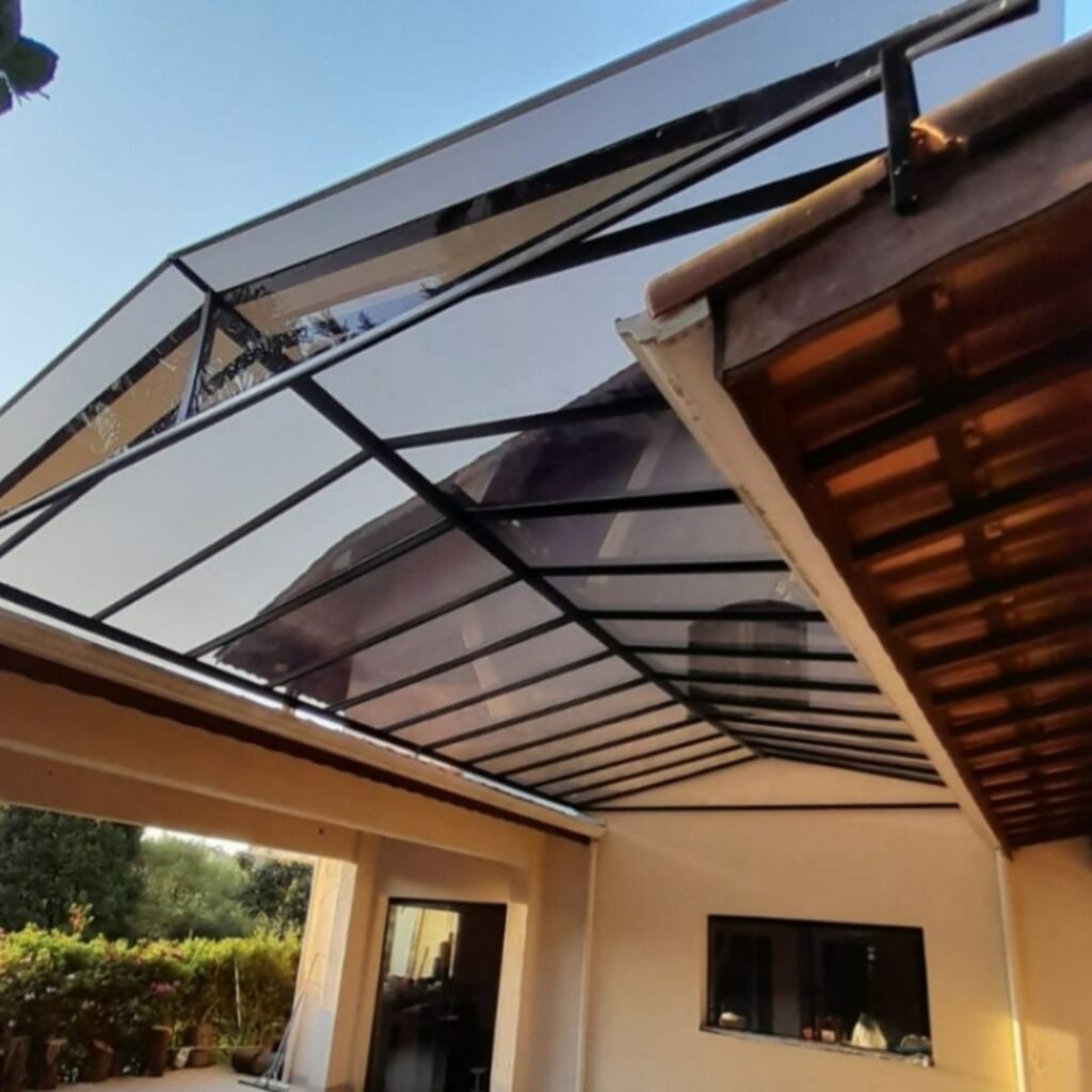 Na MAIS COBERTURAS, projetamos estruturas que se integram harmoniosamente a varandas, jardins de inverno, corredores e garagens. Nossas chapas possuem tratamento contra raios UV, essencial para o clima da nossa região, pois evita o amarelamento do material e protege seus móveis e veículos do calor excessivo. Seja no modelo alveolar (com isolamento térmico) ou compacto (com transparência total semelhante ao vidro), garantimos um acabamento premium.